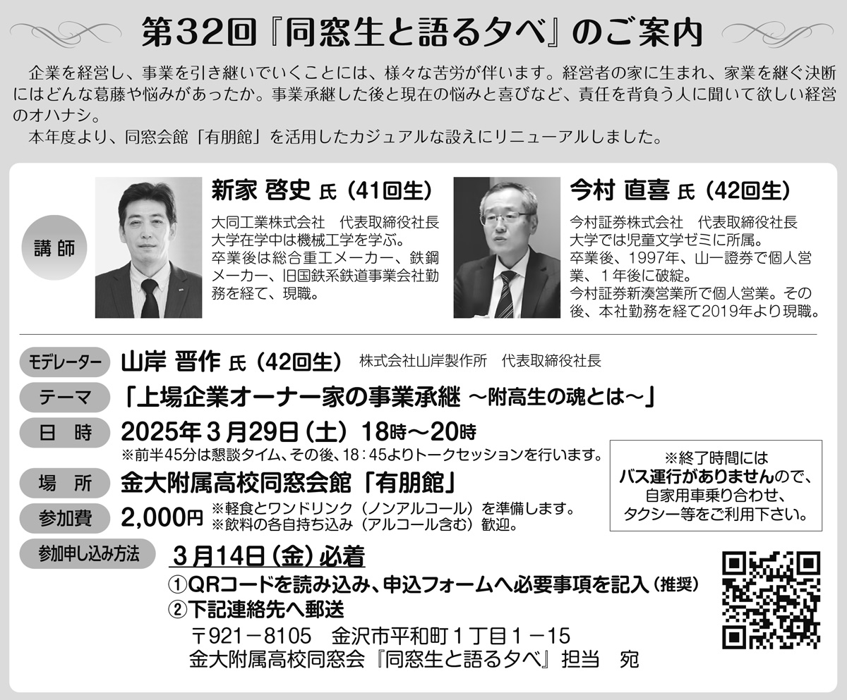 第32回『同窓生と語る夕べ』のご案内